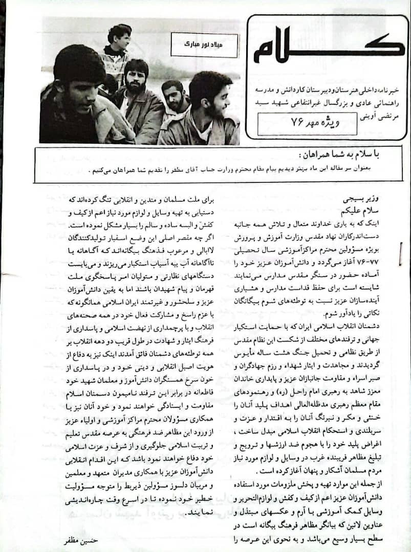 تصویر ویژه نامه کلام ماهنامه داخلی هنرستان غیر انتفاعی شهید سید مرتضی آوینی در سال 1376