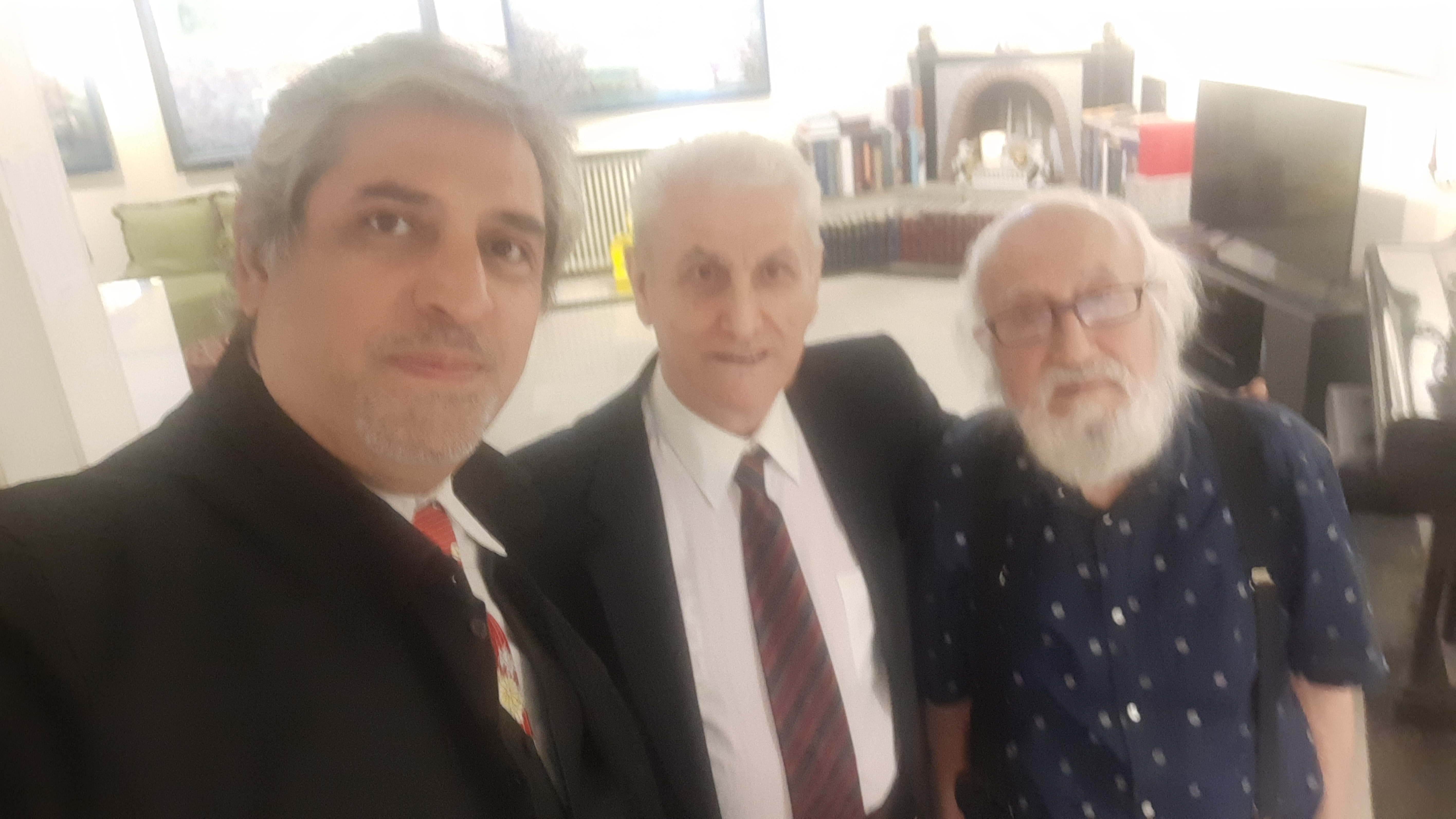 تصویر استاد حسین محجوبی و مهندس محمد باقر خانلر خانی و دکتر جعفر صابری استاد حسین محجوبی در مقابل دوربین تلویزیون آشتی برای دیدن صاحبه روی تصویر کلید کنید